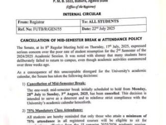 FUTB notice on cancelation of Mid-Semester Break & Attendance Policy