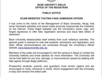 It has come to the notice of the Management of Baze University, Abuja, that some fraudulent websites and social media accounts impersonate the institution on […]