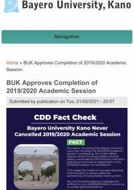 The Senate of Bayero University, at a special meeting held on Monday 4th January, 2021 approved the completion of the 2019/2020 academic session truncated by the COVID-19 pandemic. This follows a major adjustment made to the 2019/2020 calendar of academic activities.