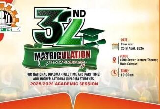 The Management of the Federal Polytechnic Offa (FPO) is pleased to announce the official date and details for its upcoming 32nd Matriculation Ceremony. The ceremony […]