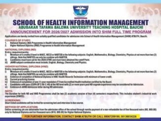 This is to inform the general public, especially prospective students of the School of Health Information Management (SHIM), ATBUTH, Bauchi, that applications are now invited […]