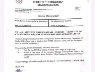 The Management of Federal University Lokoja (FULOKOJA), through the Office of the Registrar, has released an urgent internal memorandum directed at undergraduate students regarding discrepancies […]