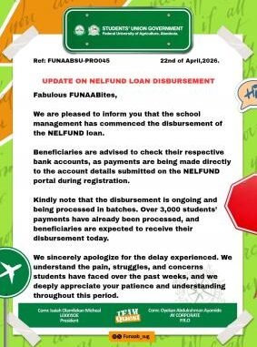 We are pleased to inform you that the school management has commenced the disbursement of the NELFUND loan.