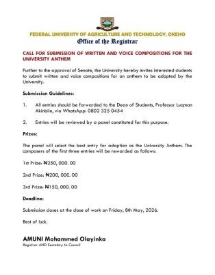 This is to inform all students that the official shuttle transport fare remains ₦150. There…